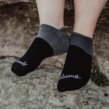 Sloomb merino blend socks, available in three styles: runners, ankles, and crews. Ankles are 1/4 top socks with light padding, arch support, a flat...